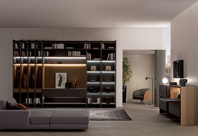 La libertà compositiva permette la progettazione di campate più ampie fino a 2200 mm, geometrie asimmetriche capaci di alleggerire la percezione visiva svincolandosi dal concetto di puro sistema giorno, quest’ultimo arricchito dalla boiserie orizzontale elettrificata che crea un sistema illuminotecnico integrato. Il tocco in più e vera personalizzazione del prodotto sono le finiture: essenze, vetro, pelle, tecno-metallo e tecno-marble si combinano in un eccezionale equilibrio materico e colori differenti per creare un nuovo Over personalizzato per ogni composizione.