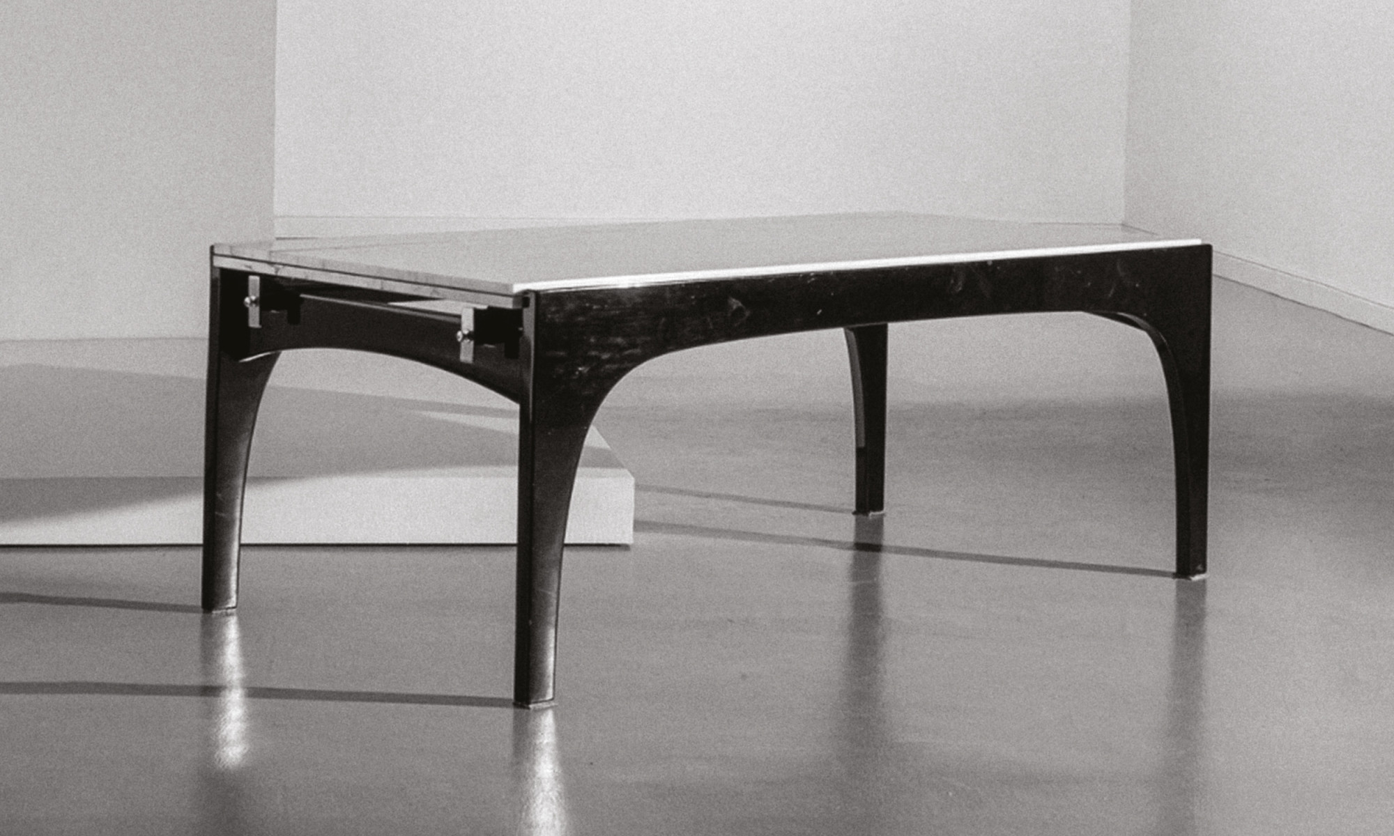 Il caratteristico arco delle gambe del tavolo percorre il distintivo periodo di sperimentazione vissuto a Milano negli anni 80. La sua forma slanciata, a metà tra un arco a sesto acuto e a tutto sesto, determina l’inconfondibilità del design e dell’equilibrio compositivo.