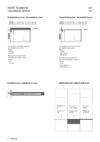 TOP PENSILE Sp 50 mm / HANGING TOP Th. 50 mm SCHEMA UTILIZZO TOP / SKETCH OF USING OF TOP